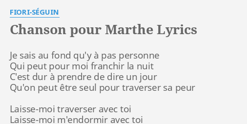 Chanson Pour Marthe Lyrics By Fiori Seguin Je Sais Au Fond